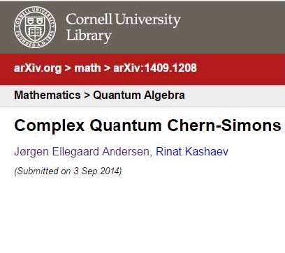 QGM Center leader, Professor Jørgen Ellegaard Andersen and associate Professor Rinat Kashaev from University of Geneva has provided a mathematical construction of Quantum Chern-Simons for complex gauge groups. The construction of Quantum Chern-Simons theory for compact gauge groups goes 25 years back to the famous work of Reshetikhin and Turaev, but it remained a challenge ever since for the world mathematical community to provide a construction of the corresponding theories, predicted by Witten, for the non-compact gauge groups. Recently Jørgen Ellegaard Andersen and Rinat Kashaev has posted a paper on the ArXiv, where they provide such a mathematical construction of the complex quantum Chern-Simons theory. This now allows the mathematical community to study this TQFT from a rigorous mathematical point of view and several such investigations are underway, in particular a number of projects have been initiated to this effect by QGM researchers.